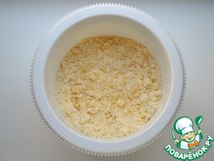 В просеянную муку добавить холодное сливочное масло, порубленное на кусочки. Руками быстро перетереть массу до консистенции сырого песка.
