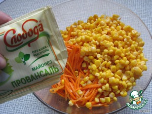 Соединить морковь с кукурузой и перемешать с майонезом. |