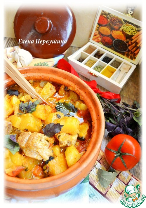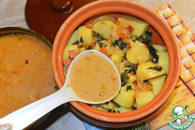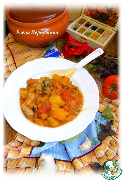 Рецепт «Рагу в горшочке в сливочно-томатном соусе»: