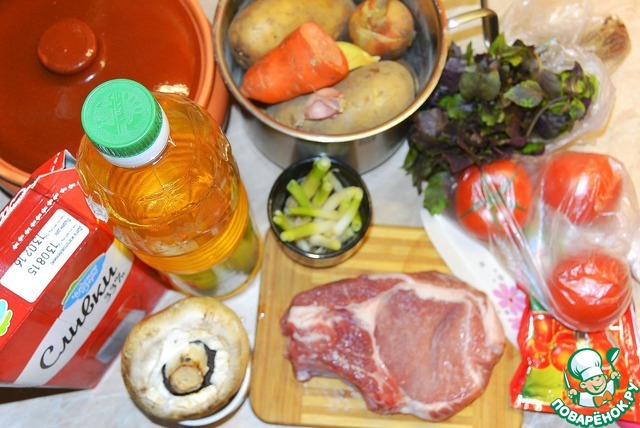 Ингредиенты для «Рагу в горшочке в сливочно-томатном соусе»: