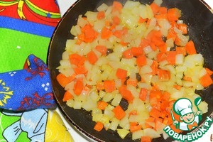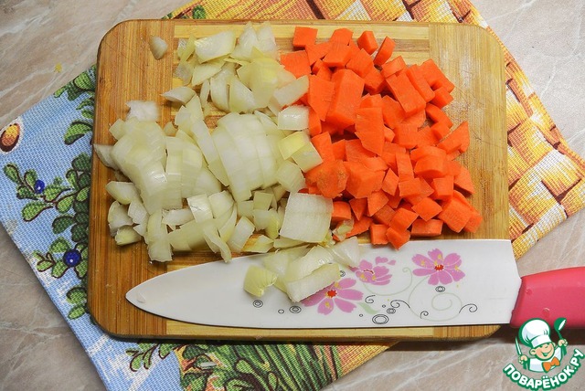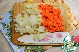 Лук нарезать кубиками, а морковь натереть на крупной терке.