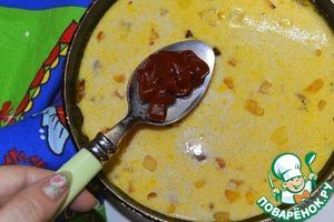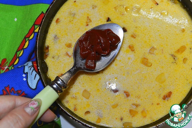 Добавить томатную пасту, перемешать, посолить по вкусу,