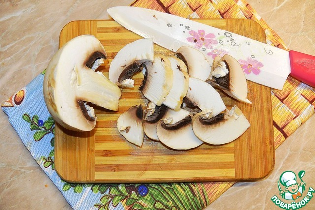 Нарезать помидоры и выложить на грибы. Слегка посолить.