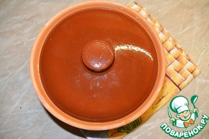 Достать горшочек, аккуратно, полотенцем, т. к. он горячий.