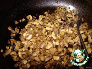 Грибы и репчатый лук режем на кусочки, пережариваем на масле, добавляем в капусту.