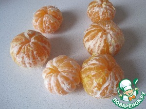 Сахар растворяем в соке мандарина и тонкой струйкой вводим, замоченный и растворенный желатин. Желе ставим в холодильник широкой плоской форме.