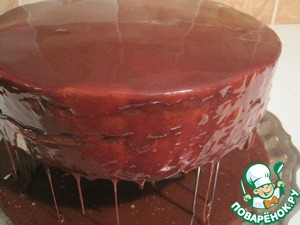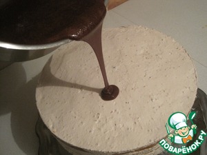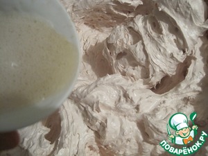 В шоколадно-сгущенную смесь добавляем сироп из меда и сахара, немного охлаждаем и вводим растворенный желатин.