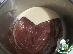 Шоколад растапливаем на водяной бане, добавляем сгущенное молоко, перемешиваем