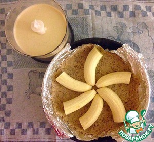 2. В форме, смазанной растительным маслом, мокрыми руками равномерно распределить тесто для основы и отправить в духовой шкаф на 10 минут.