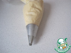 Тесто отсаживаем из мешочка и кондитерской насадки