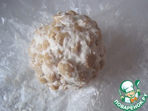 Готовый мелкие шарики соединяем с 1 ст. л. крема, перемешиваем