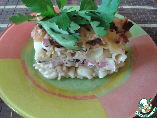 Рецепт от Федора Ивановича Шаляпина из поварской книги его повара Хвостова. Количественное содержание ингредиентов в нем не указано, поэтому продукты я взяла по своему усмотрению. Готовила это блюдо первый раз и была приятно удивлена результатом. Очень, очень вкусно получилось. И сытно. Семья, друзья оценили макарончики на пятерку! Подойдет блюдо и на повседневный ужин, не стыдно подать и на воскресный семейный обед. Советую приготовить, не пожалеете!