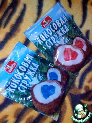 - Стружка кокосовая (3 ст. л. - белая, 3 ст. л. - синяя, 3 ст. л. - красная) — 9 ст. л.