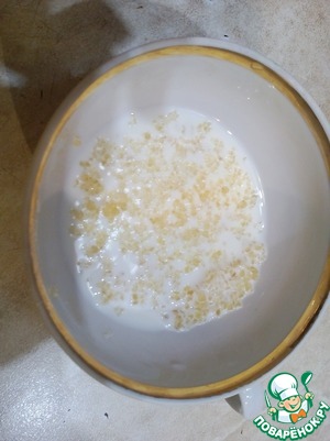Для приготовления крема замачиваем желатин в 50 мл молока минут на 20