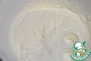 Сливки взбить до устойчивой пены и ввести в кофейную массу. Белок с каплей лимонного сока и 20 г. сахара взбить до устойчивых пиков и так же добавить в массу. Наш мусс готов.