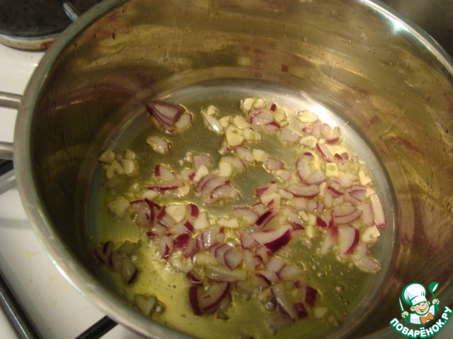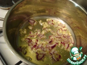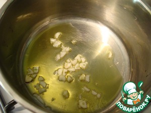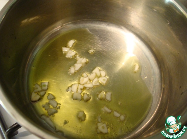 "В разогретое оливковое масло выложила чеснок."