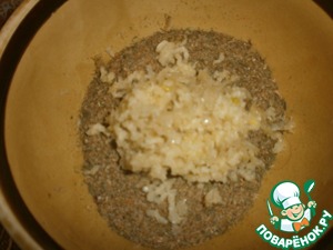 Теперь тщательно перетираем специи с чесноком. Получается масса, напоминающая мокрый песок.