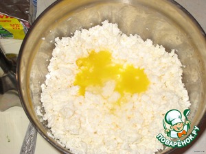Можно предварительно прокрутить творог через мясорубку или протереть через сито, а затем смешать с остальными ингредиентами.