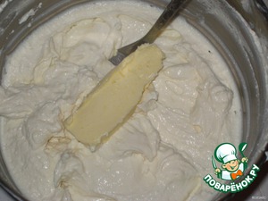 Растирать творог как следует, чтобы не было цельных крупинок творога. Меня они не смущают, у меня не хватает терпения протирать через сито, зато если очень хорошо растереть, творог получается, как полностью однородная желтоватая масса без белых вкраплений.