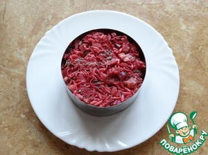С помощью кольца выложить салат на тарелку