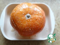 Накрыть тыквенной крышкой, переложить тыкву в жаропрочную форму;