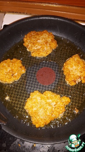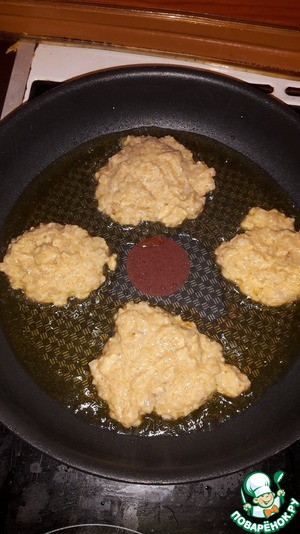 Получившийся фарш берем столовой ложкой и выкладываем в форме оладушек на сковороду.