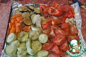 Поставить противень в духовку и запекать овощи до мягкости, 35-40 минут.