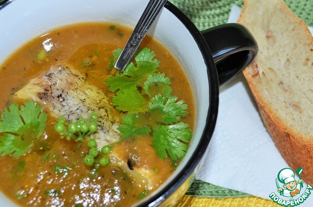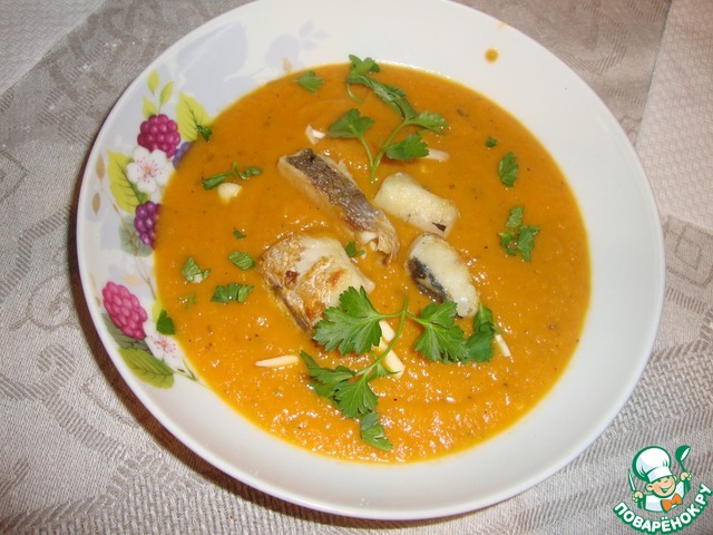 Рецепт «Суп из печеных овощей с жареной рыбой»: