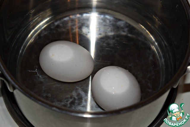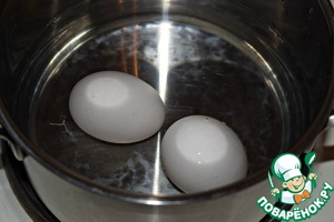 Варить яйца до готовности.