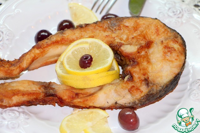 Вынуть рыбу из маринада, обсушить и жарить обычным, Вами любимым способом, обваляв в муке или без панировки.