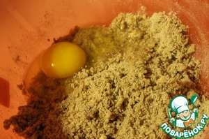 Добавить яйцо, перемешать. Если тесто плохо собирается в шар, то добавить воды.