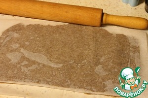 Раскатать тесто между листами пергамента, толщиной примерно 3-5 мм.