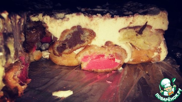 Не смотря на то, что описание рецепта велико, торт делать совсем не сложно и довольно быстро. Делала его дважды. В первый раз в баварский мусс добавила 500 гр сливок для взбивания, во второй раз часть сливок заменила сметаной и в таком варианте торт мне показался идеальным. Такого же мнения была моя семья вместе с гостями. Необыкновенно вкусный! Заварные пирожные, благодаря мягкой, воздушной структуре, просто идеально сочетаются с очень нежной структурой баварского мусса, который просто тает во рту. Рекомендую вам этот восхитительный десерт.