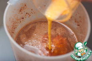 Яйца перемешайте вилочкой, отмерьте 100 гр (примерно 2 некрупных яйца) и влейте к шоколадной массе, перемешайте.