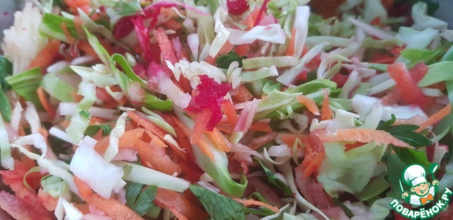 Салат содержит огромное количество клетчатки. Очень вкусный. За фото к рецепту спасибо поваренку caramel77.