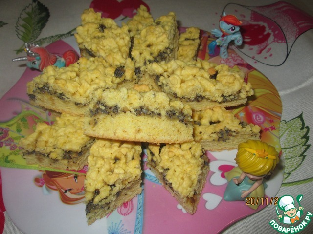 Распределить крошку по всей поверхности пирога. Выпекать в разогретой до 180-190 градусов духовке около 30 минут до золотистого цвета.