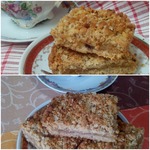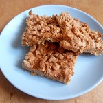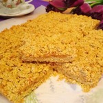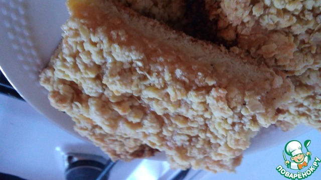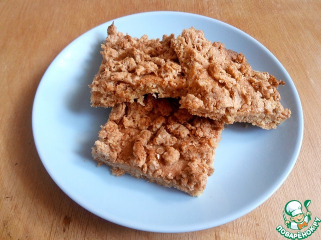 В оставшееся тесто добавить овсяные хлопья и растереть все до состояния крошки.