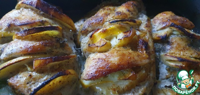 Рецепт «Куриные грудки, запеченные с лимоном и яблоками»: