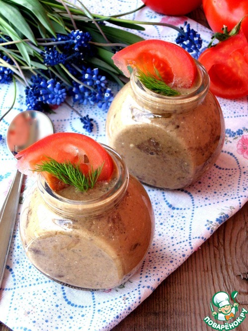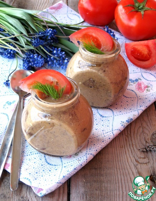 Рецепт «Горячая закуска из печени с грибами»: