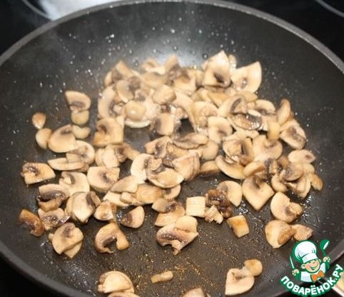 Растопите вторую половину сливочного масла и обжарьте в нём нарезанные грибы на очень сильном огне, влейте вино и потушите до полного выпаривания вина около 7-8 минут