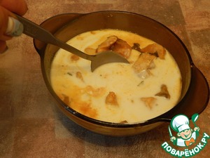 Соединить с нарезанным сельдереем, залить бульоном (у меня был куриный бульон для супа)