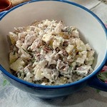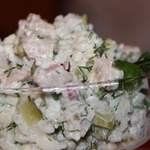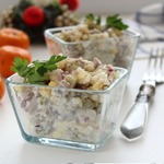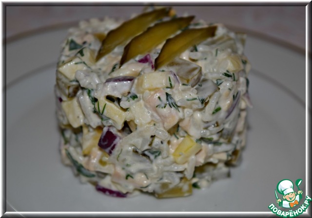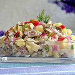 Салат очень понравился жене, в нашей семье она - главный любитель салатов. Да и мне тоже пришелся по вкусу, лукавить не стану: очень сытный и одновременно легкий, с богатым и приятным вкусом