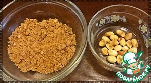 Арахис поджарить в микроволновой печи (минуты2) и очистить. Измельчить 20г арахиса любым удобным для Вас способом (я измельчала в кофемолке), а 10г арахиса оставить для украшения.