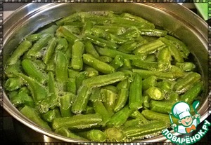 Стручковую фасоль отварить до готовности в подсоленной воде.