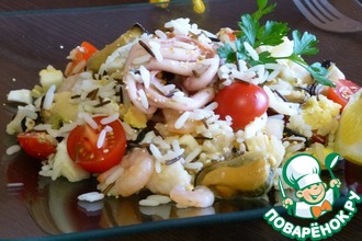 Очень люблю рис от Мистраль в пакетиках! Он вкусный, хорошего качества и, конечно, его удобно готовить. Предлагаю попробовать этот несложный салат для тех, кто любит сочетание риса и морепродуктов.