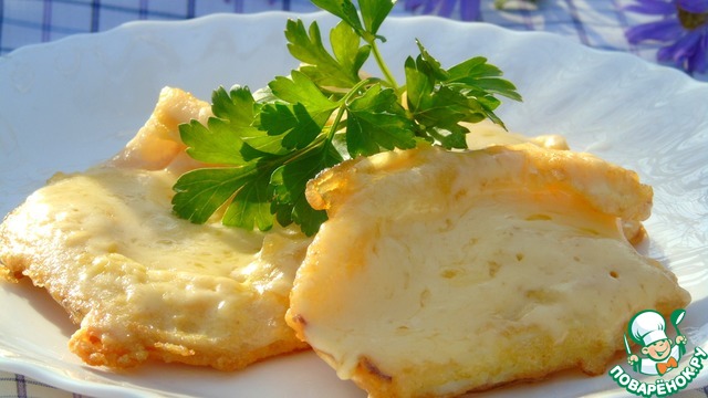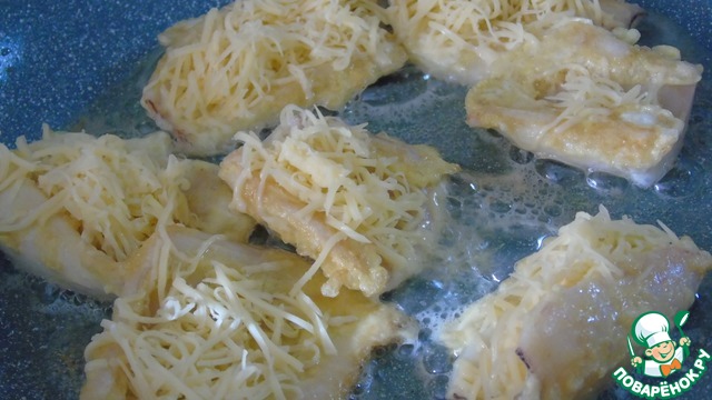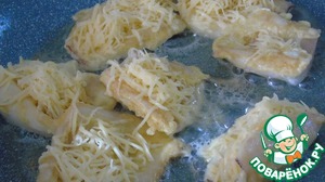 После того как перевернете на вторую сторону насыпьте сыра на каждый кусочек и по-больше)))