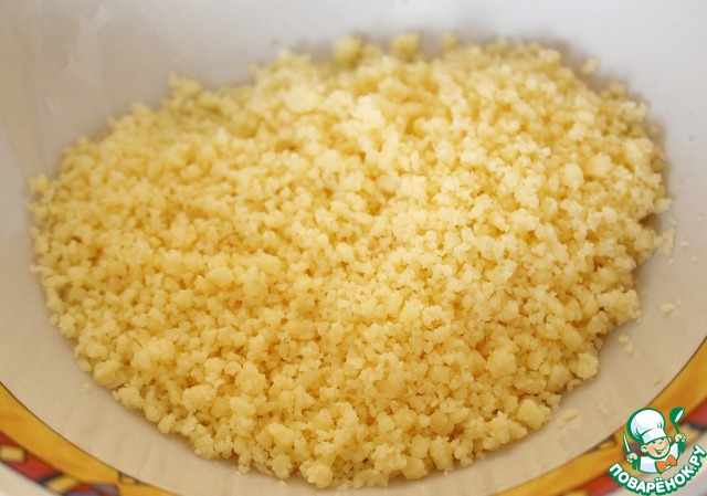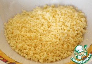Сыр измельчить в блендере или натереть на мелкой терке.