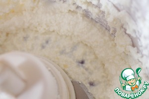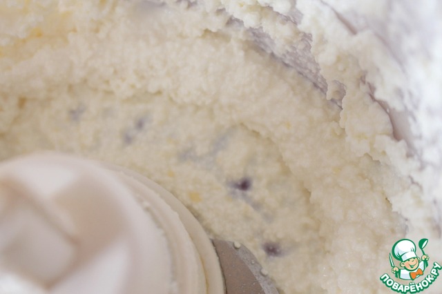 Творог с молоком пробить в бледере. Если у Вас творог большей жирности, добавляйте меньше жидкости. У меня 12%-ый, я добавляла 35 мл.