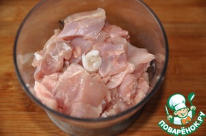 Для приготовления рекомендую брать куриное филе с бёдер, оно нежнее, чем грудки. Мясо измельчаем с помощью блендера или очень мелко режем.