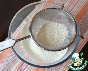 Духовку включить разогреваться на 180 градусов. Муку просеять с разрыхлителем.